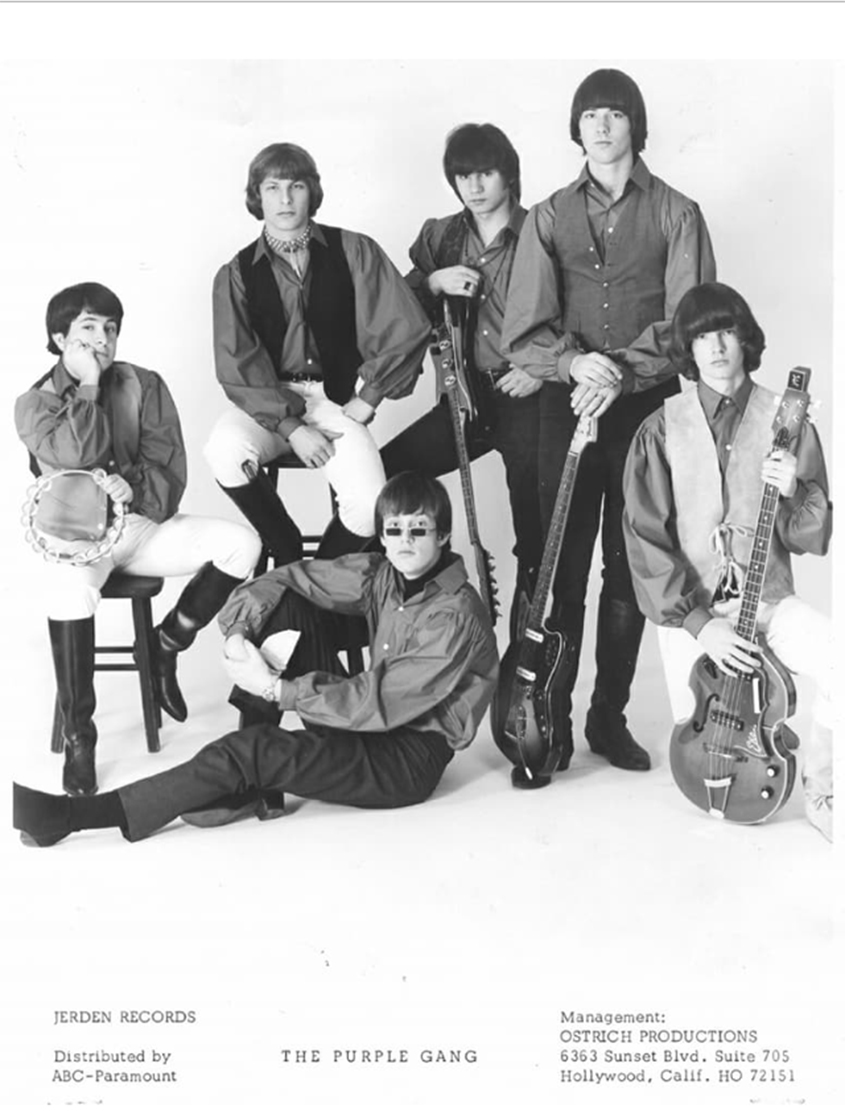Here is a song by The Purple Gang. We mostly recorded for MGM records and it was a wonderful first band to be involved with. I was the Lead Singer, on Piano, the great Harry Asher, Lead Guitarist, Alan Wisdom, on Bass, Marty Tryon, Rhythm Guitar was Mark Landon, and our Drummer, Tom Atwater. When I look back now I realize how lucky I was that these guys got together with me. This is a song called “Bring Your Own Self Down” written by Tanden Almer, who had just written “Along Comes Mary” for the Association. This was our second single recorded at Western Studios on Sunset Boulevard where I met, before anyone had heard or seen them, “The Mamas and the Papas.” We had the same engineer: Bones Howe. I could not explain what I had seen or heard. I tried to tell my friends what the group looked like and how they sounded. Nobody got their greatness until they heard their first song, “California Dreamin'” come on the radio.